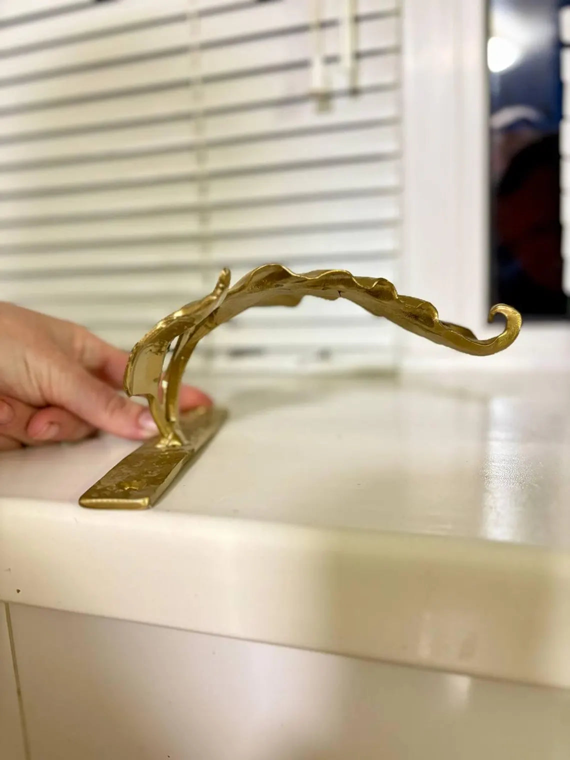 Curtain hook - Wrought Iron Curtain Tieback Leaf – Hand-Forged Drapery Holder – Gold, Bronze, Black with Patina – Set of 1 or 2