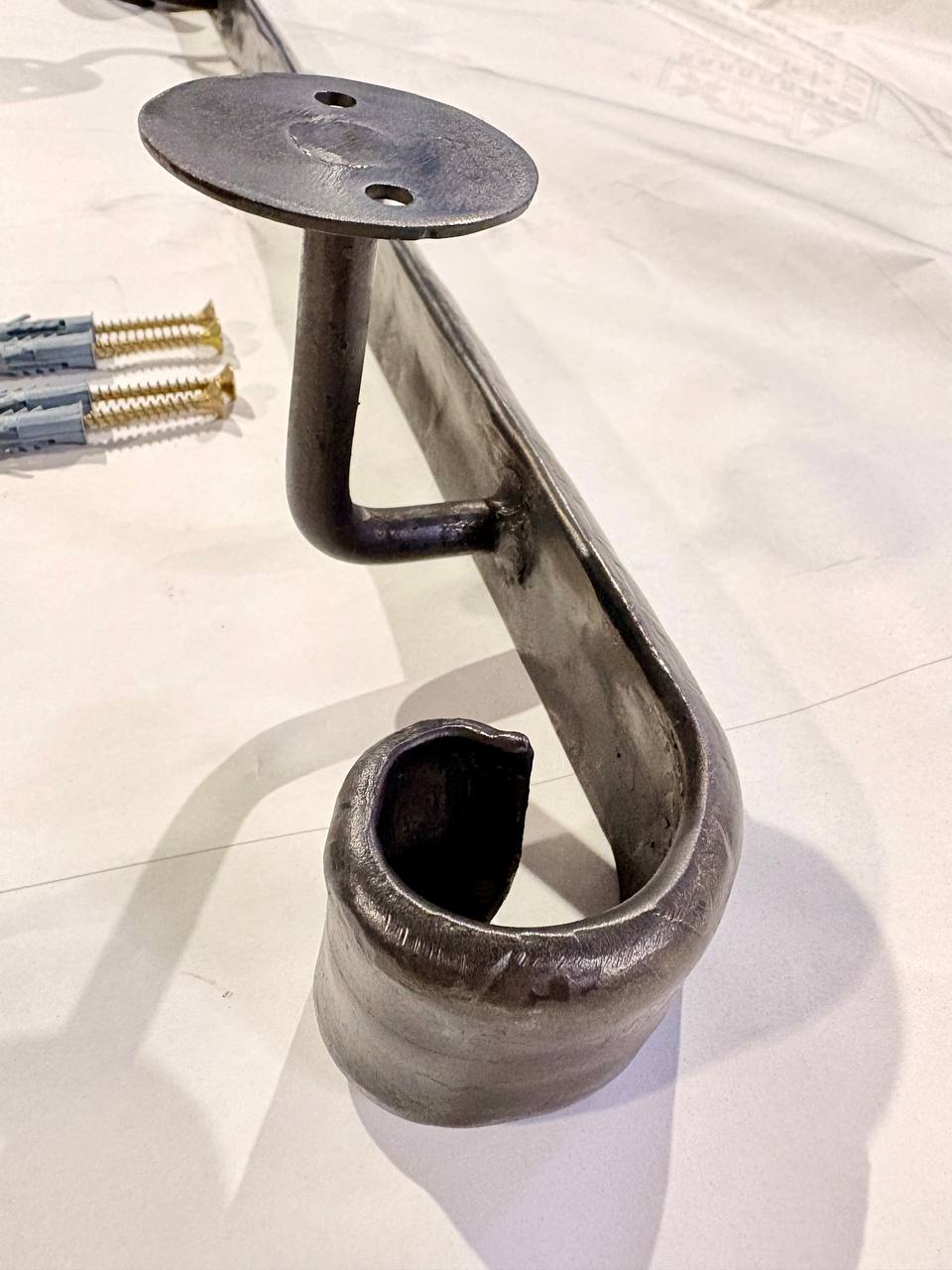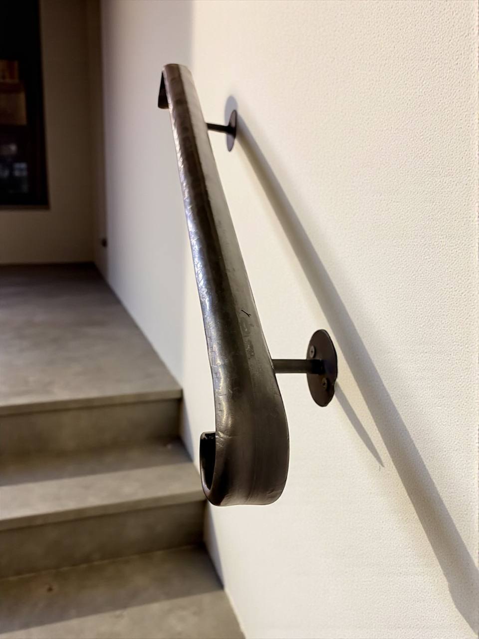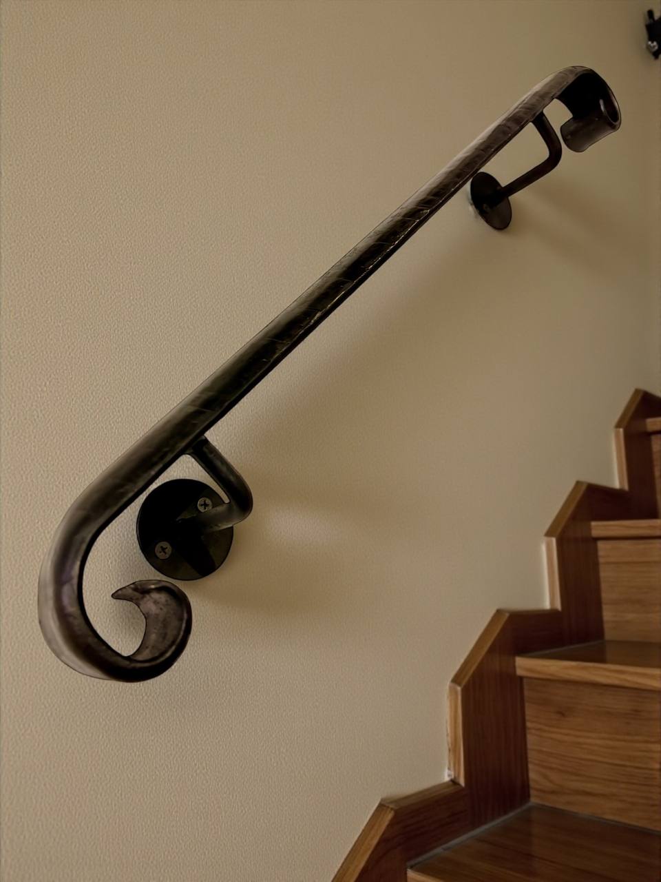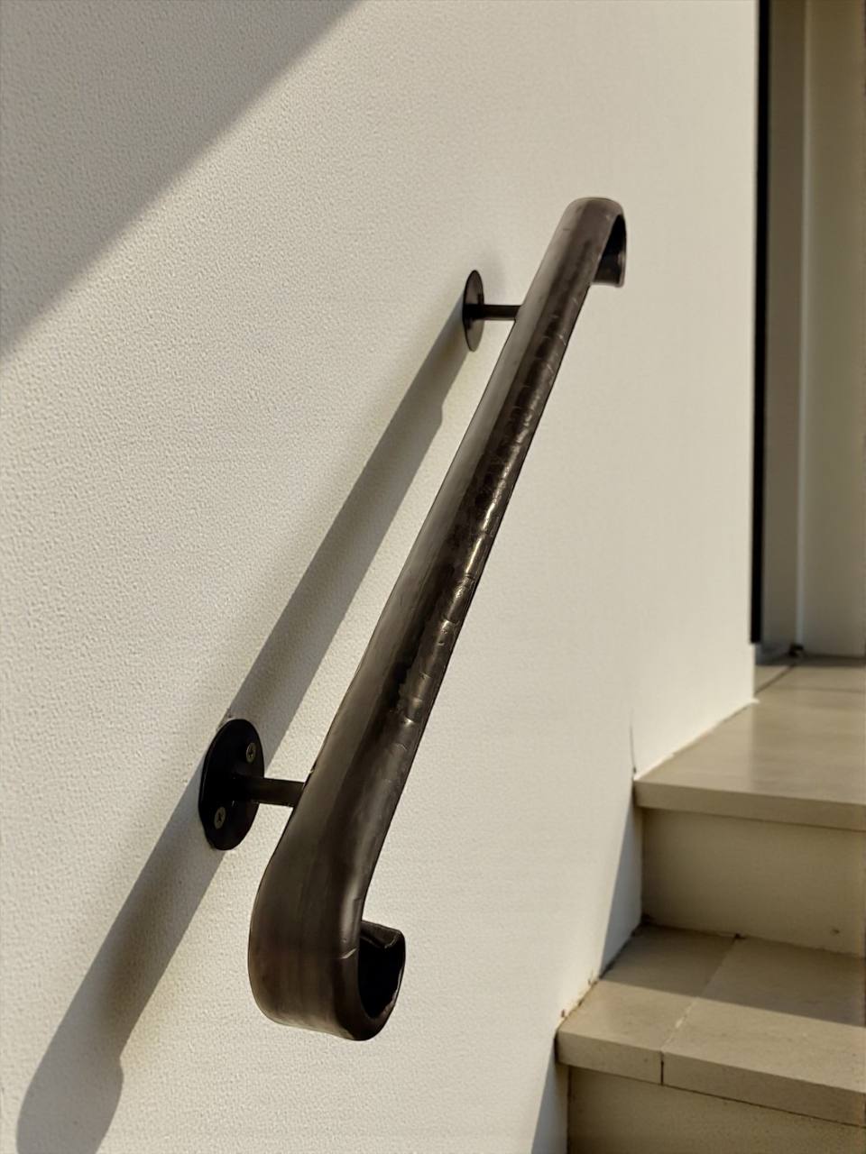 This forged wall-mounted handrail is crafted entirely by hand, giving it exceptional durability, a unique textured surface, and a classic, understated appearance. Each piece is forged from solid steel using traditional blacksmithing techniques and finished to achieve a premium look suitable for both interior and exterior applications.