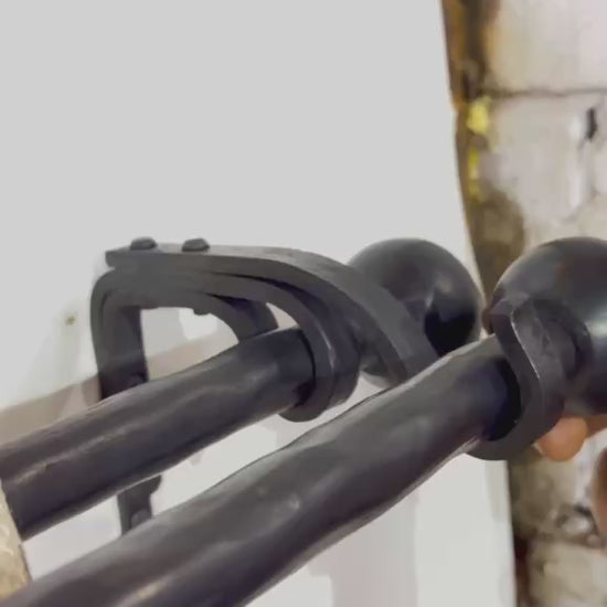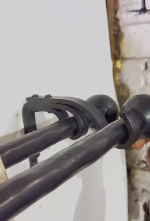 Bring authentic craftsmanship to your interior with this solid hand-forged iron curtain rod. Each piece is individually shaped, textured, and finished by hand, ensuring exceptional durability and a timeless look. Ideal for classic, rustic, farmhouse, or industrial-style spaces.