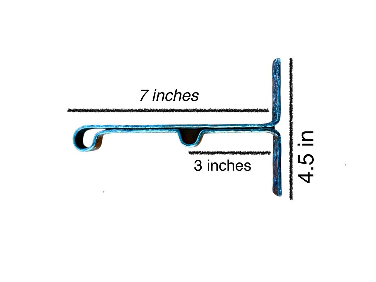 Каждый кронштейн изготовлен из кованой полосовой стали сечением 20×4 мм и подвергнут термообработке для исключительной прочности. Крючки выкованы и закалены из стальных прутков диаметром 6 мм. После ковки все детали подвергаются многослойной обработке горячим маслом и покрываются защитным лаком, что обеспечивает длительную устойчивость к коррозии и влаге.