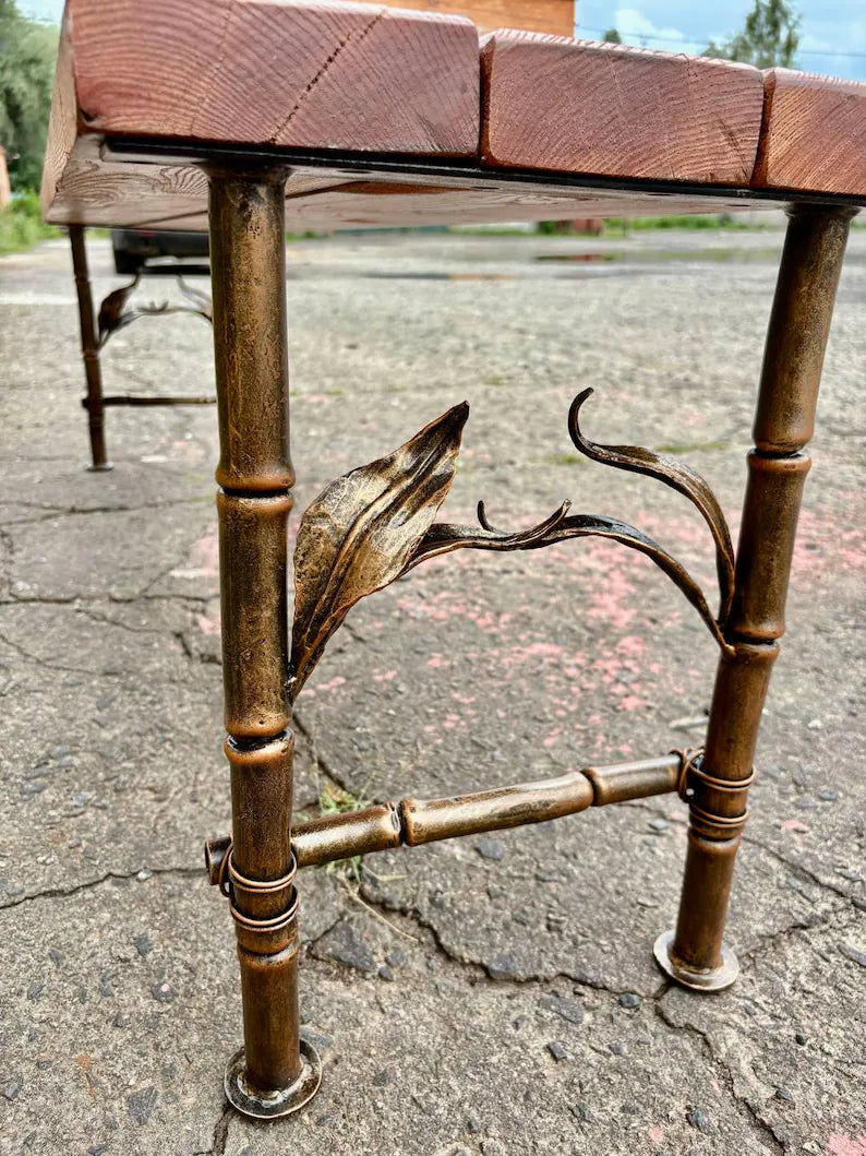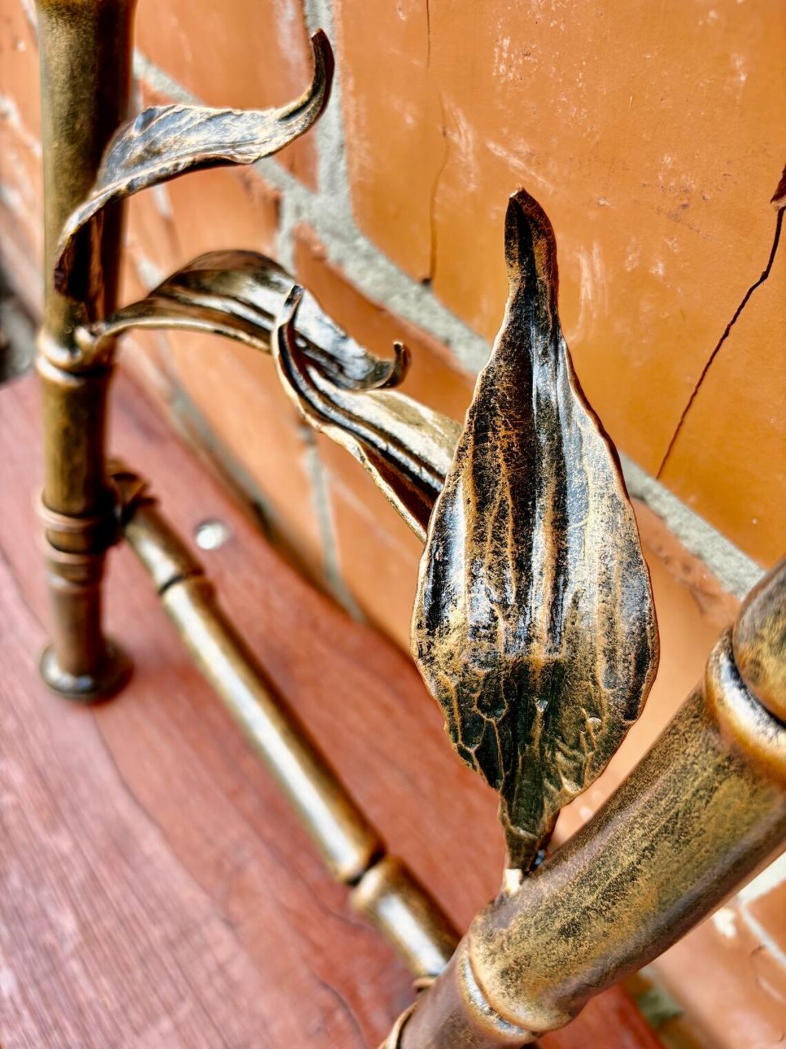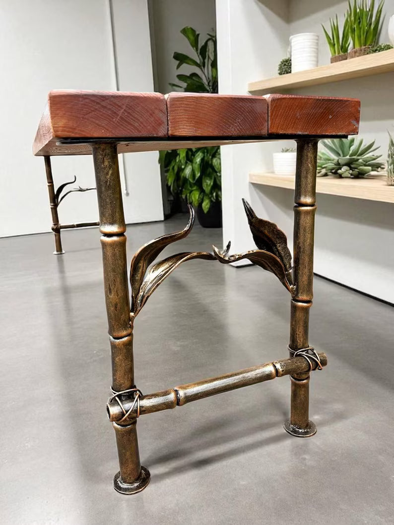 These legs are handmade from thick ¾″ steel pipe, hammered to create a bamboo texture. Each leaf is individually shaped – no templates, no mass production. The artisan design blends nature-inspired elegance with durable geometry.
