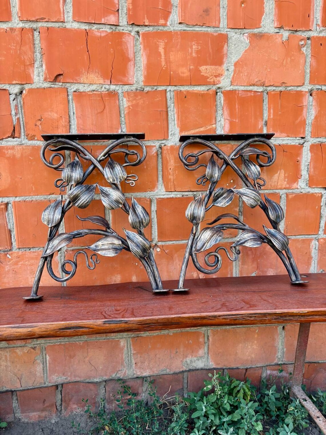 Wrought Iron Bench Legs – Decorative Handmade Wrought Iron Brackets – Rustic Art Furniture Base for Bench, Stool or Chair