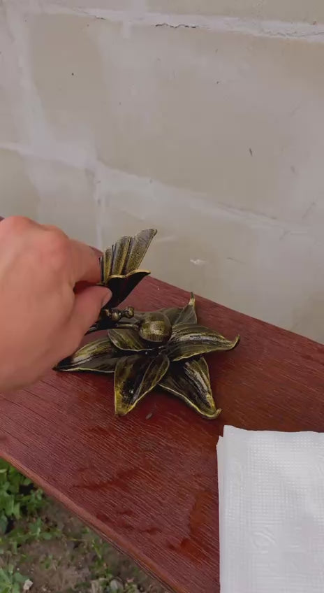 • The flower features six individually hand-forged petals, each with its own unique character.