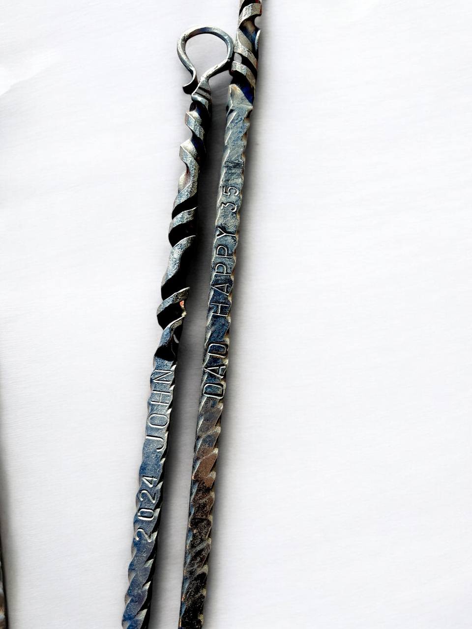 Hand-forged personalized fire poker with custom engraving – a unique blacksmith gift for Dad, husband, or loved one. This custom engraved fireplace tool is not only functional but also makes a meaningful anniversary gift, Father’s Day surprise, or outdoor fire pit accessory.