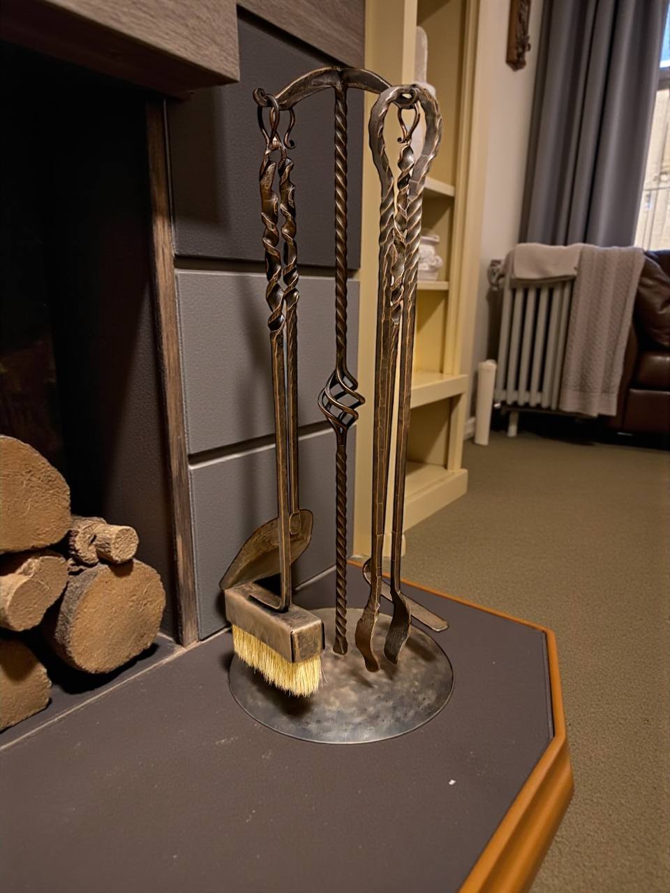Make your fireplace set truly yours — this hand-forged masterpiece can now feature your **engraved name, date, or a special quote**
