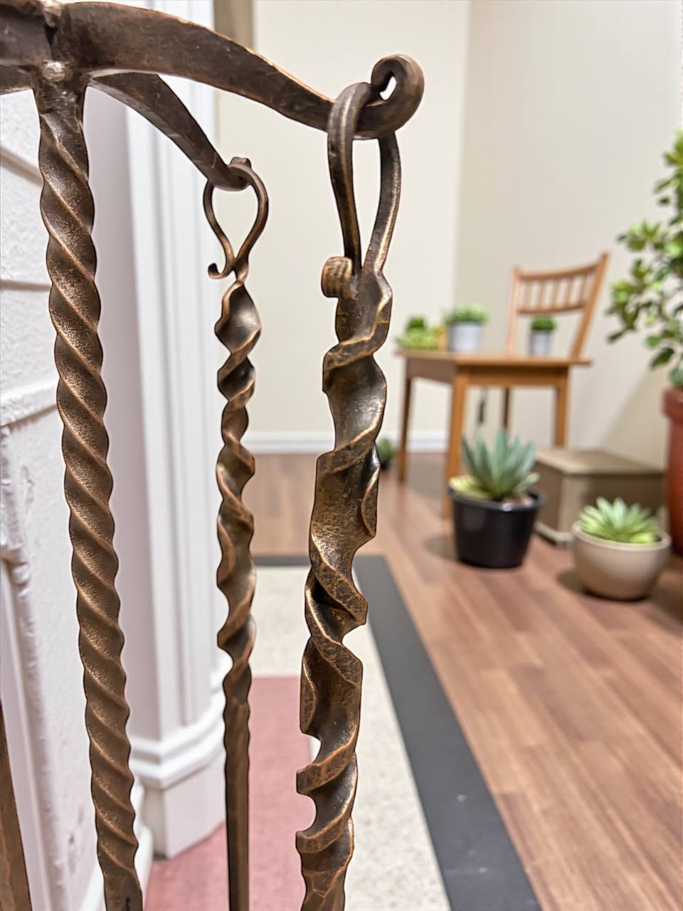 on the base of the stand. Every element is forged by hand from a single iron bar — no welds, no shortcuts, only true craftsmanship.